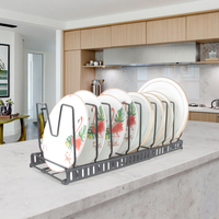 Adjustable Standing Type Dinnerware Storage Rack Expandable Pot Pan Lid Organizer with Cleaning Tools Easy Installation