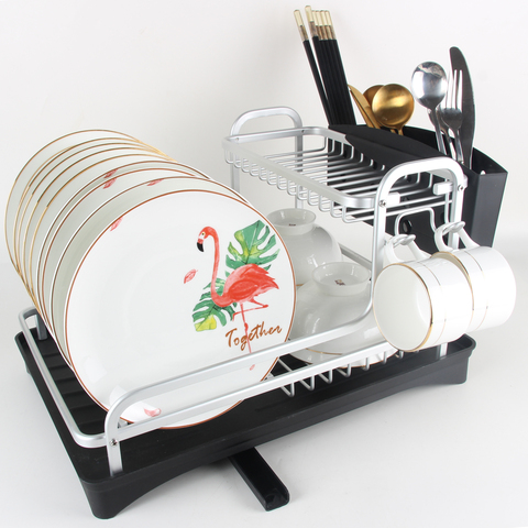 シンクの上の高品質のキッチンアルミブラック調理器具皿デイナー乾燥ラック